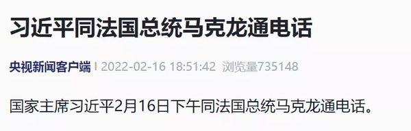 国家主席习近平2月16日下午同法国总统马克龙通电话。