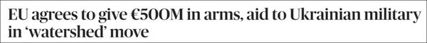 欧盟外交政策负责人博雷利描述称,“又一条禁忌消失了,即欧盟不为战争提供武器,可是的,我们正在做这件事……这场战争需要我们的介入,以支持乌克兰军队。”