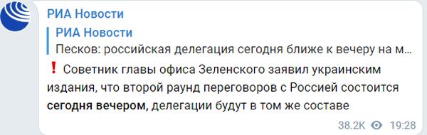 据塔斯社报道,白俄罗斯信息分析机构“民主力量圆桌”负责人尤里·沃斯克列先斯基在俄罗斯“24小时新闻”节目中说,自1日起,白方几乎跟理应出席第二轮俄乌谈判的乌方代表团的所有成员都失去了联系,这些人的电话均已关机。