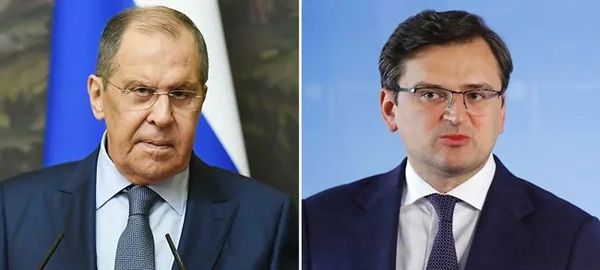 俄罗斯外长拉夫罗夫(左)和乌克兰外长库列巴
