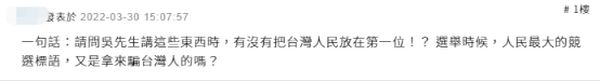 有网友问吴钊燮,“讲这些东西时,有没有把台湾人民放在第一位!?”