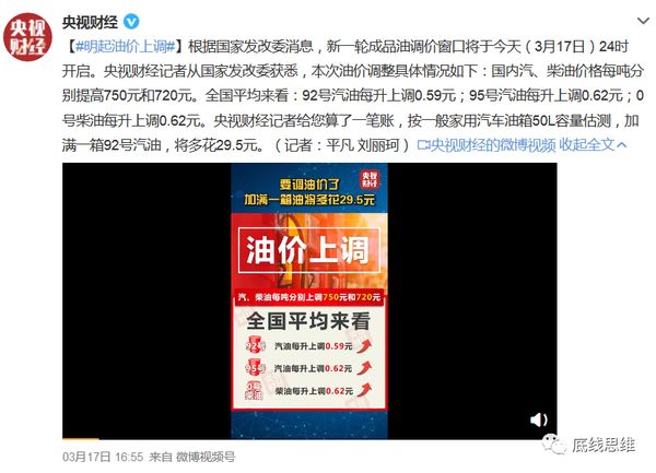 受俄乌冲突影响,中国国内油价不断上调。图为“央视财经”3月17日报道