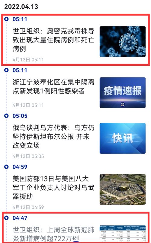 耿直哥在查阅该媒体的新闻客户端在4月13日发布的滚动快讯新闻后,发现引起网络争议的那段“奥密克戎导致出现大量住院和死亡病例”的信息,是该媒体在4月13日凌晨5时11分发布的。但在当天早些时候的4时47分,该媒体还发布了一则题为“世卫组织:上周全球新冠肺炎新增病例超722万例”的新闻。