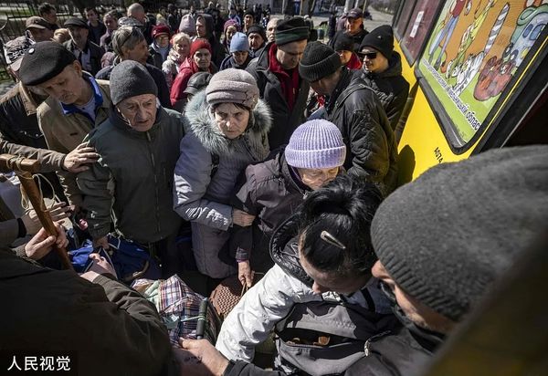 当地时间2022年4月7日,顿巴斯地区民众乘车撤离当地