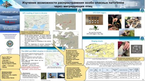 UP-4项目,主要研究通过候鸟进行特别危险的感染传播的可能性,包括能导致人类致死率高达50%的高致病性禽流感H5N1以及纽卡斯尔病毒。