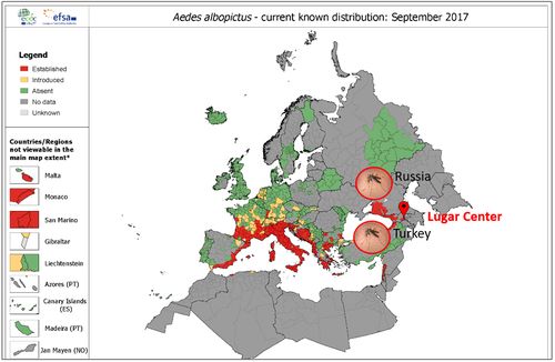 伊蚊在格鲁吉亚、俄罗斯南部和土耳其北部分布,它们在2014年五角大楼卢加尔中心项目开启后被首次发现