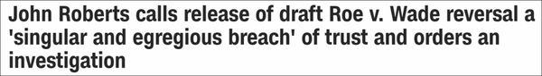 “这是对最高法院和在此工作的公务人员的侮辱,这是对法院信誉的一次异常而严重的破坏。我已指示法院警察部门负责人对泄密的来源展开调查。”罗伯茨在声明中说道。