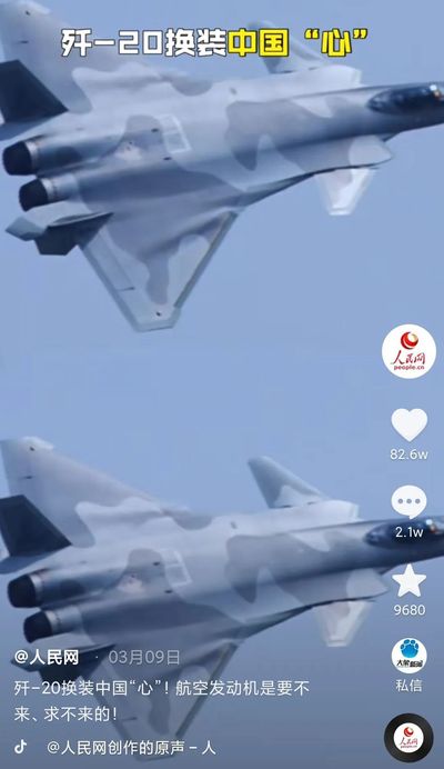 “歼-20”战机 来源:抖音@人民网
