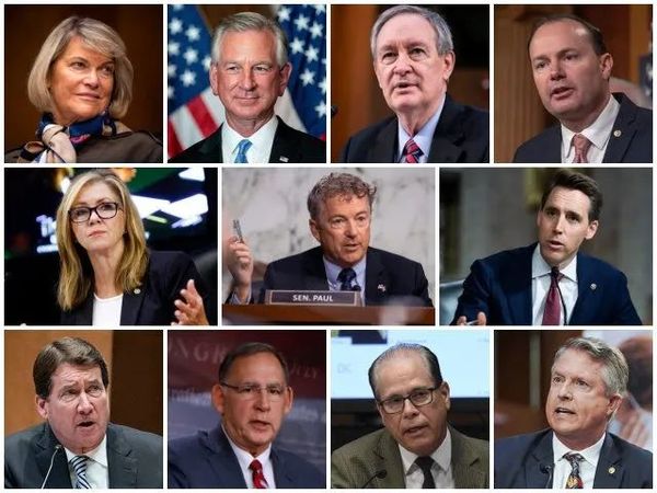 11位投反对票的共和党参议员,正中为保罗。图自美媒