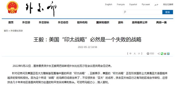 王毅:要对美国的“印太经济框架”划一个大大的问号