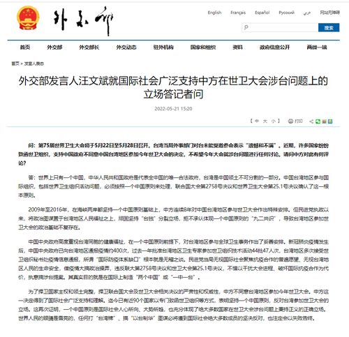外交部发言人汪文斌就国际社会广泛支持中方在世卫大会涉台问题上的立场答记者问。