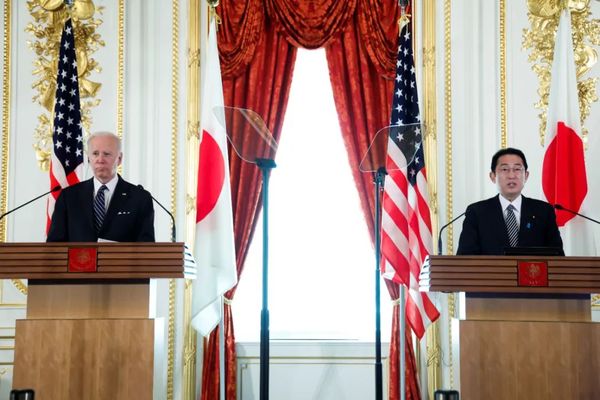 当地时间2022年5月23日,日本东京,日本首相岸田文雄与美国总统拜登举行联合记者会 图源:澎湃影像