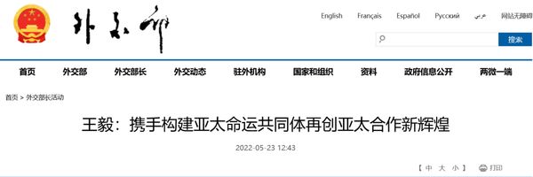 王毅:携手构建亚太命运共同体再创亚太合作新辉煌2022年5月23日,国务委员兼外长王毅以视频方式出席联合国亚太经社会第78届年会开幕式并致辞。……