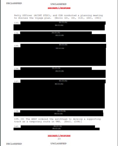 老司机从美国海军学会网站下载了相关调查报告,发现它虽然号称“解密”,但大段内容都已经经过“抹黑”处理: