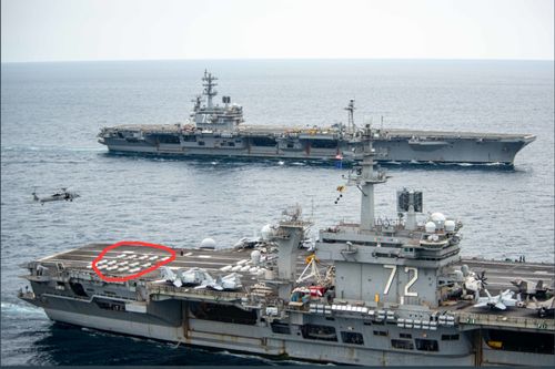 美国海军的双航母近日在台岛以东海域进行演练。由于演习区域与“御用摄影师”日本防卫省日前公布的中国辽宁舰编队演练区域重合,因此外界对于美国航母的此次演练高度关注。但老刘认为,除了似乎很有玄机的演习区域以及双航母出动的时机,实际上更应该关注的是以下内容。同时,还有一个细节值得关注:美军发布的演练画面中似乎有着对他们自身来说很不吉利的内容。
