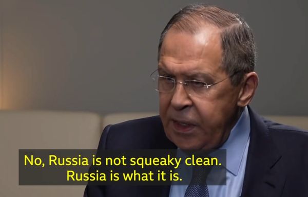 当地时间16日,拉夫罗夫在莫斯科接受BBC记者采访。图自BBC