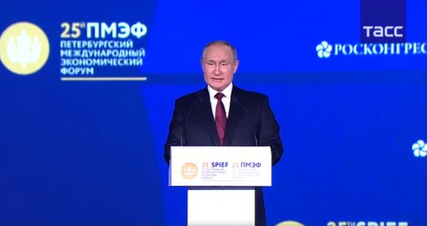 普京在圣彼得堡国际经济论坛上发言,图自塔斯社