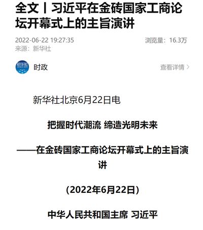 全文丨习近平在金砖国家工商论坛开幕式上的主旨演讲