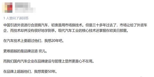 有人回答:现代汽车工业的核心技术还掌握在欧美日那里。在汽车技术上要超过他们,我想20年吧。
