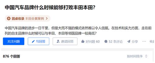 当时的知乎上有一个热门问题:中国汽车品牌什么时候能打败丰田、本田?