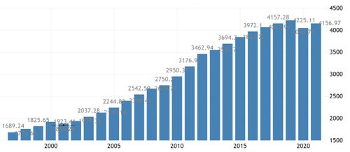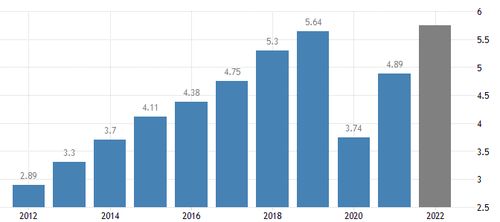 当年的政府债务累积达到了820亿美元,占GDP比重突破101%。2021年更达到了115%。超低税收、中等福利,收1块钱就要花掉2.4元。寅吃卯粮,这种狂欢显然不可持续。