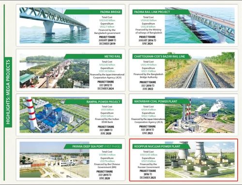 近年来,孟加拉国也推出雄心勃勃的“十大基建项目”:包括跨恒河的帕德玛大桥、卢普尔核电站、达卡地铁项目、高架高速公路、达卡机场扩建、马塔巴里深海港等。