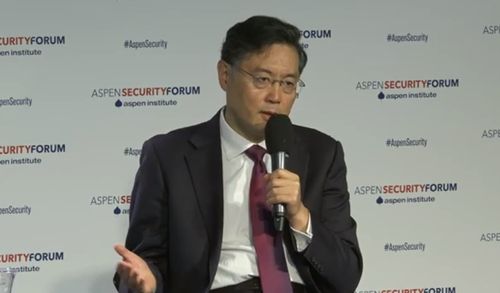 秦刚在阿斯彭安全论坛上接受采访。截图自youtube