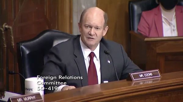 特拉华州民主党籍参议员克里斯·孔斯提问 视频截图