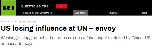 托马斯-格林菲尔德回答道:“这确实是我每天在纽约(联合国总部)面临挑战的关键所在,因为我们被置于了一种处境,必须和我们的对手竞争,才能影响联合国的行动。”