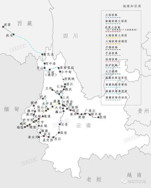 大瑞铁路,全线位于云南省境内,东起大理市,西至中缅边境城市瑞丽市,全长330公里,沿线有白、彝、回、傈僳、苗、纳西等10多个少数民族聚集区。