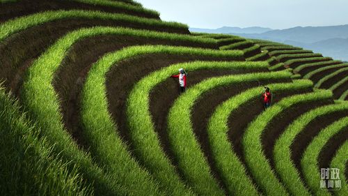 △印尼西爪哇,工人们在绿色梯田照料洋葱。(图/视觉中国)