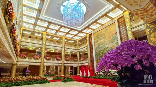 △钓鱼台国宾馆芳华苑内摆放的蝴蝶兰,印尼是蝴蝶兰的重要产地之一。(总台央视记者鄂介甫拍摄)