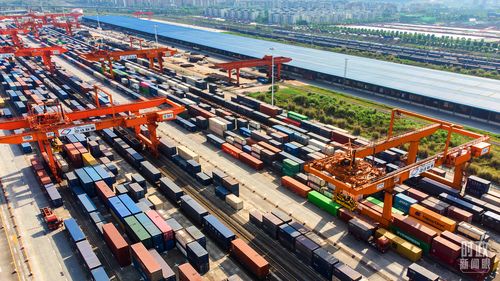 △重庆国际物流枢纽园区一片繁忙。2022年一季度,西部陆海新通道铁海联运班列运量突破17万标箱。(图/视觉中国)