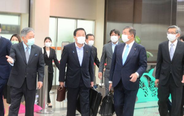 日本前防卫大臣、一名前防卫副大臣以及日本参议院总务会副会长拼凑而成的所谓跨党派议员团27日抵达台湾 图源:台媒