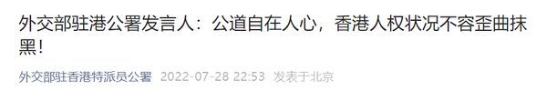 发言人表示,香港回归25年以来,“一国两制”实践取得举世公认的成功。中央政府始终全面准确、坚定不移贯彻落实“一国两制”、“港人治港”、高度自治方针,坚定支持香港特色民主发展,充分保障香港居民依法享有的言论、新闻、出版、集会等自由。香港国安法的制定实施,有力捍卫了“一国两制”和全体香港居民的利益和福祉,得到广大香港居民和国际社会的积极支持和充分认可。特区选举制度的成功实践有效落实“爱国者治港”原则,有力促进良政善治,事实证明新选制是一套符合香港实际、有利于维护和实现香港居民民主权利的好制度。