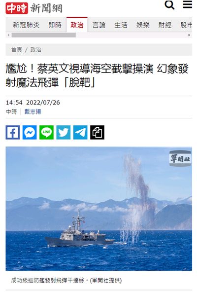 但讽刺的是,台空军“幻影2000”战斗机发射的“魔术”近程空对空导弹和F-16战斗机发射的“响尾蛇”空对空导弹都明显未命中在空中作为标靶的热焰弹。就连台媒也都承认“现场尴尬”。