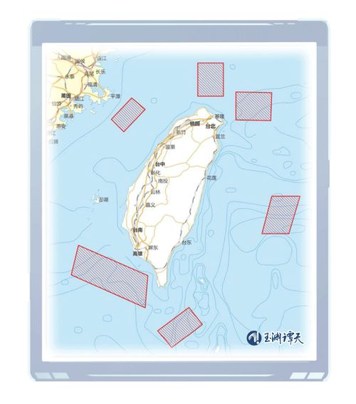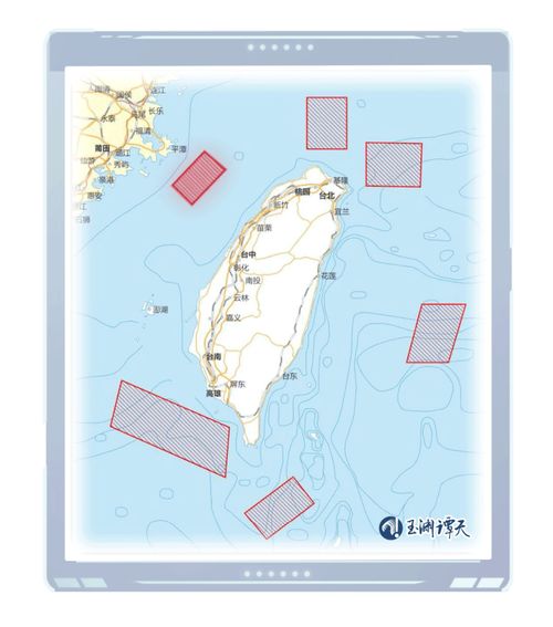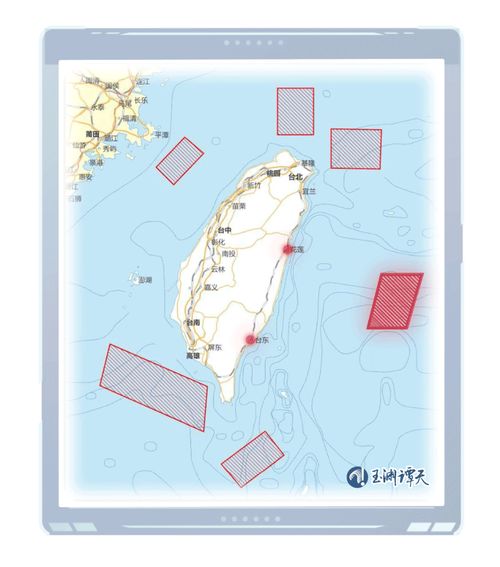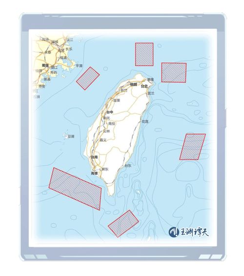 把上面几个区域连起来,可以看出,解放军已经对台湾岛形成了前所未有的包围态势。