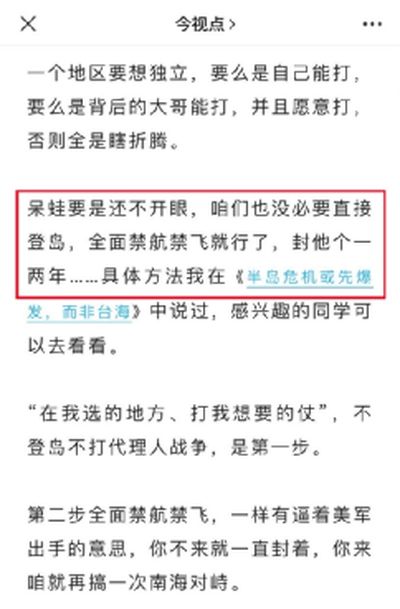 5月13日,再次发文建议“以禁航、禁飞为手段,长期围岛”。