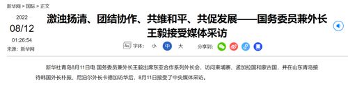 国务委员兼外长王毅出席东亚合作系列外长会,访问柬埔寨、孟加拉国和蒙古国,并在山东青岛接待韩国外长朴振、尼泊尔外长卡德加访华后,8月11日接受了中央媒体采访。