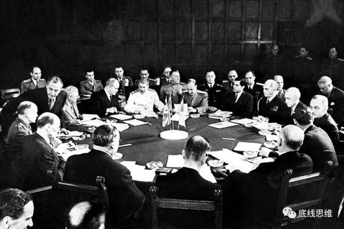 各国重要领袖于会议场就《波茨坦公告》相关内容议事(资料图/维基百科)