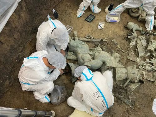 8号坑24日提取大型立人青铜神兽