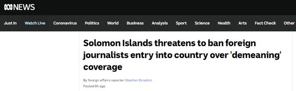 反击偏见!所罗门群岛将禁止恶意攻击中所关系记者入境,澳媒还狡辩。