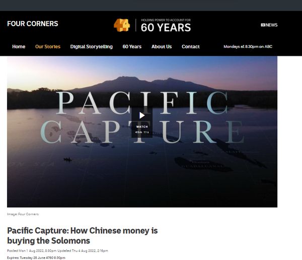 本月1日,ABC一档电视节目“四角方圆”播出声称,中国林业集团正在为购买所罗门群岛的深水港和简易机场进行谈判,而这可能被当成“军事基地”。ABC还对中国驻所罗门群岛大使馆发起攻击,称根据其获得的文件,大使馆曾两次动用“行贿资金”。ABC甚至在25日的最新报道中还在炒作称,该节目探讨了中国在所罗门群岛日益增长的影响力。