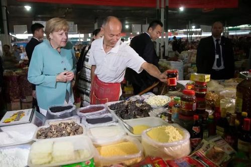 ▎2021年11月,默克尔表示与中国完全脱钩是错误的,欧盟应继续和中国合作。图为2014年默克尔访华期间,在成都菜市场购买郫县豆瓣酱
