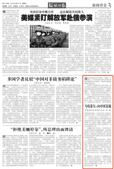NHK称,马哈蒂尔小心翼翼地处理着马来西亚与中国的关系,并在采访中借俄乌冲突对亚洲发出警告:“我们不需要对抗。美国似乎热衷于封锁中国,这意味着升级并派遣军舰进入南海。有一天,可能会发生意外。”
