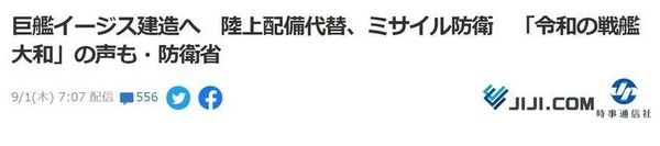 时事通讯社:防卫省将建造宙斯盾巨大战舰,代替陆基宙斯盾用于拦截导弹,有声音说是“令和版战舰大和”
