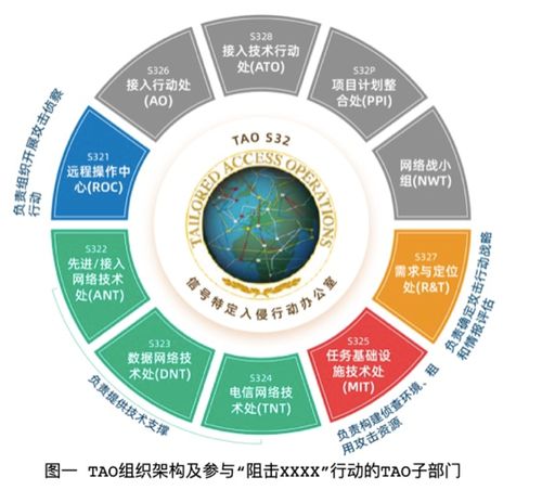 TAO成立于1998年,是目前美国政府专门从事对他国实施大规模网络攻击窃密活动的战术实施单位,由2000多名军人和文职人员组成,下设10个处室。
