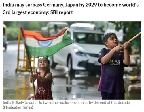 到了9月4日,印度国家银行经济研究部门作出一个更“亮眼”的预测:印度将在5年后,也就是2027年超过德国,还可能在7年后的2029年以目前的增长率超过日本,届时,印度将成为仅次于美国和中国的全球第三大经济体。