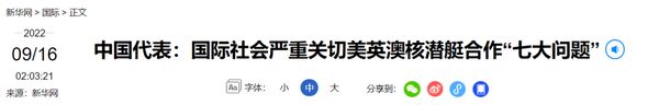 中国代表:国际社会严重关切美英澳核潜艇合作“七大问题”