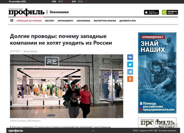“漫长的告别:为什么西方公司不想离开俄罗斯?”,本文截图来自《侧写》杂志网页